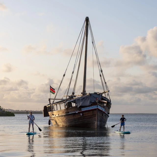 Anchored in the tranquil waters of the Lamu Archipelago, Tusitiri Dhow is surrounded by white sandy beaches, swaying palms, and the turquoise Indian Ocean, teeming with marine life. The archipelago, steeped in history, is home to Lamu Town, the oldest living town in East Africa and a UNESCO World Heritage Site.