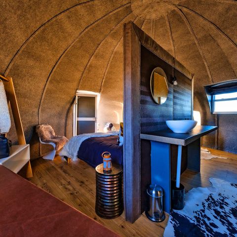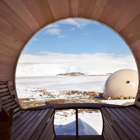 Operated by White Desert, the camp features six heated polar pods designed with both comfort and adventure in mind. Each pod provides a cosy, stylish sanctuary with panoramic views of the surrounding icy expanse, while communal areas, including a lounge, library, and dining space, create the perfect atmosphere to relax and reflect on the day’s adventures.
