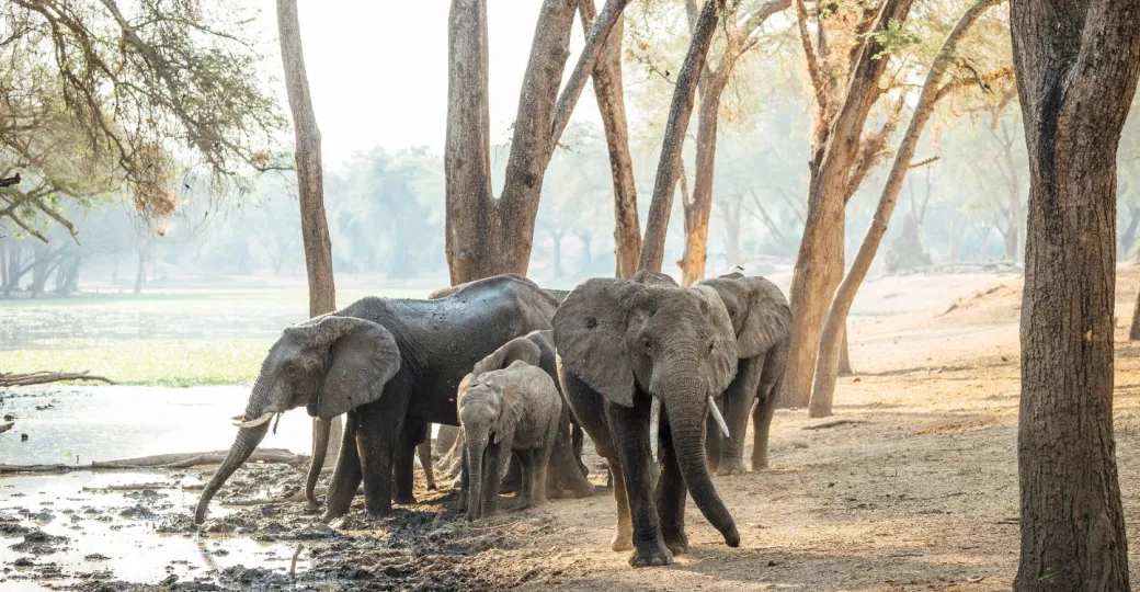 Winterthorns are iconic trees of Zambia's Lower Zambezi and Zimbabwe's Mana Pools. The stunning high canopy these forests create give rise to many iconic photos of elephants standing up on their back legs reaching for seedpods.