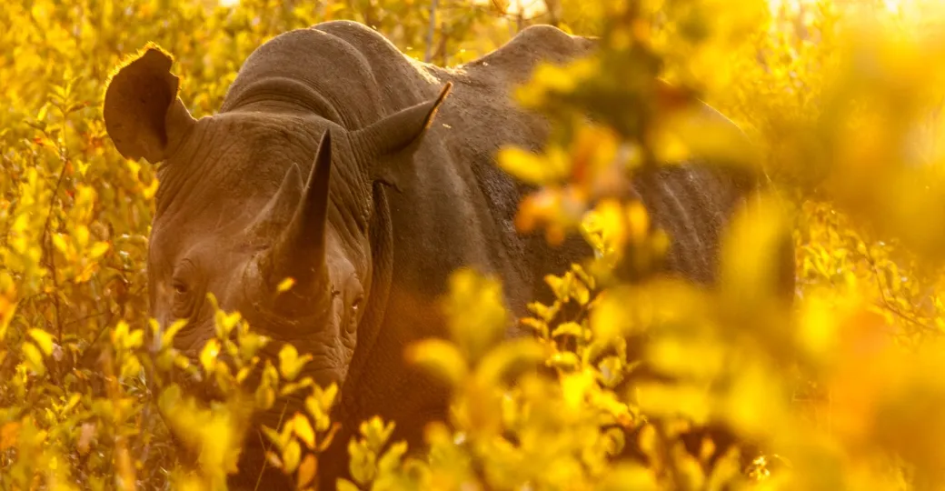 The black rhino, the smaller of the two rhino species that roams the African continent also happens to be the feistier. Compared to its cousin the white rhino, who on the whole is quite sedate, the black rhino is known for being much more aggressive and often either charges at safari vehicles or high tails it away.