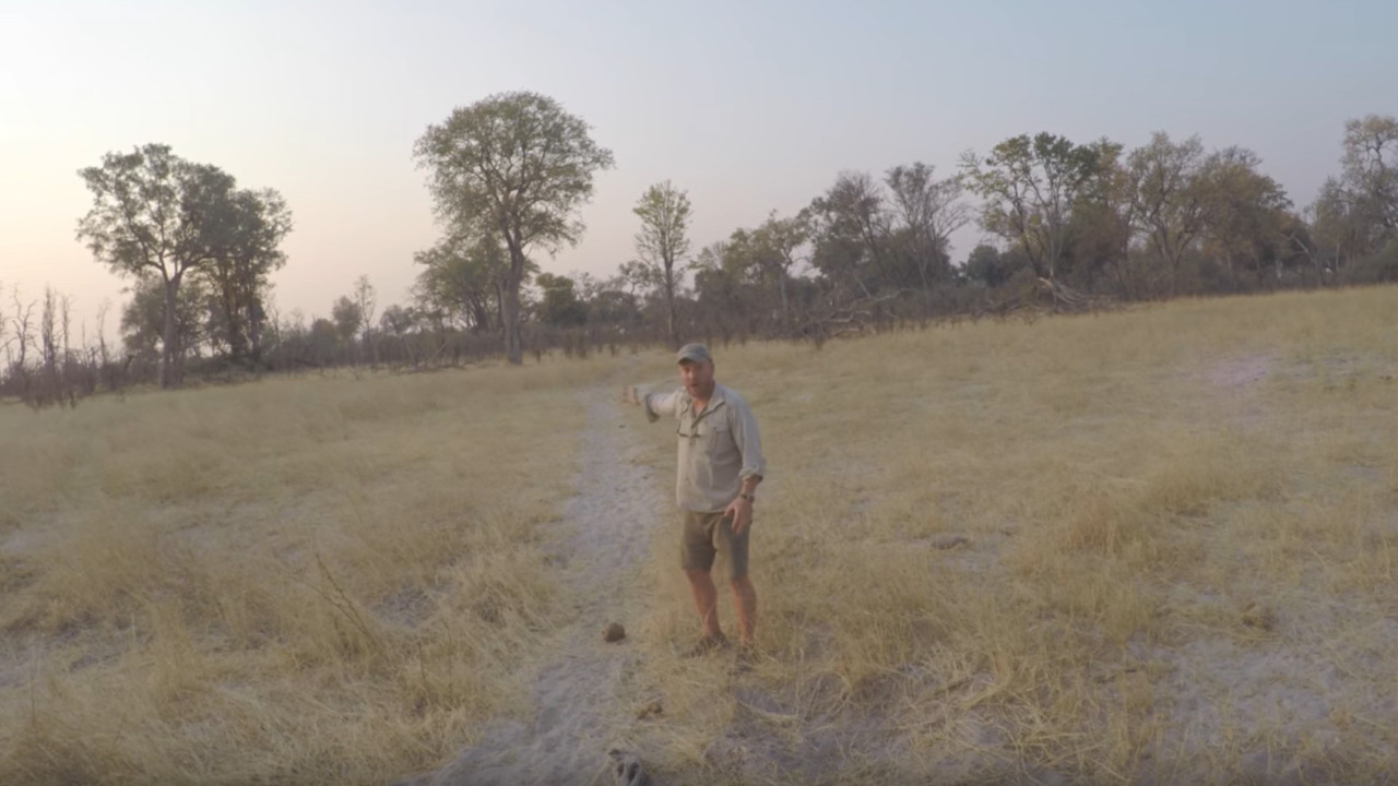 Toby gives a brief explanation of an Elephant Path while on safari in Botswana.
