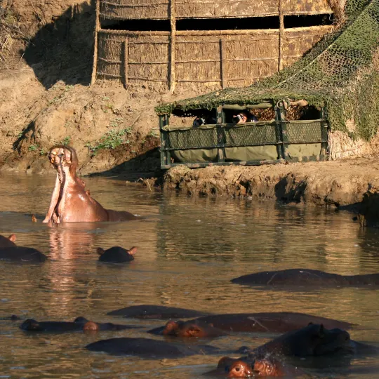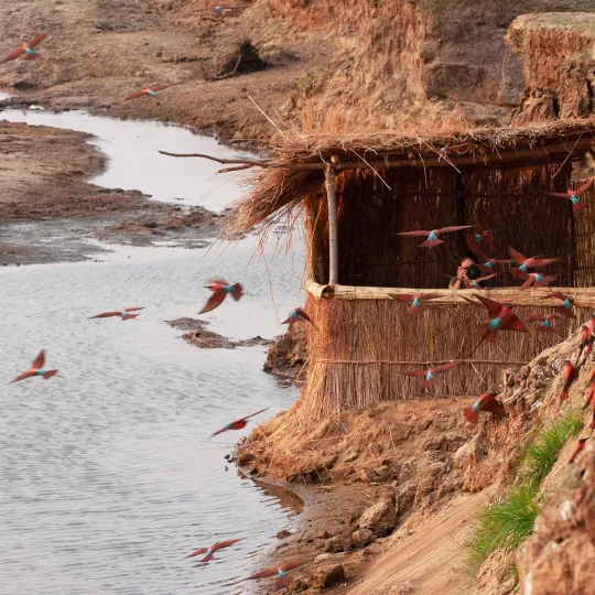 A seasonal hide for the arrival of the carmine bee-eaters. Credit: Remote Africa Safaris