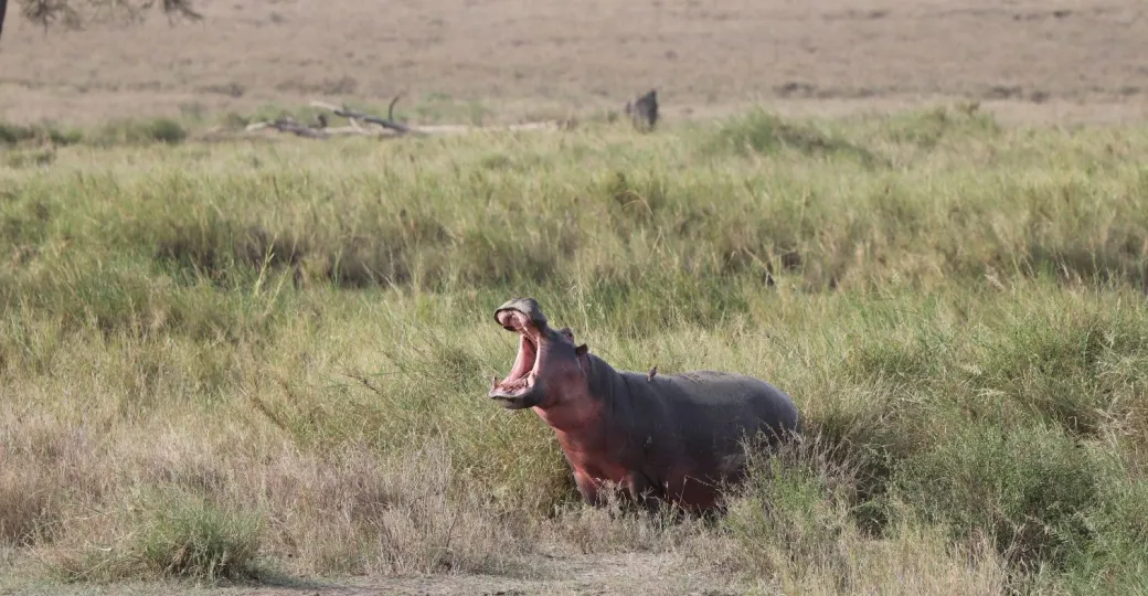 A hippo our of water in Tanzania's Ngorongoro Crater - Anders J