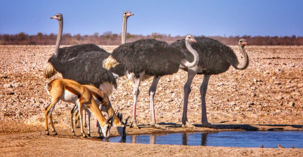 Male ostriches have bold black-and-white colouring that they use to attract females. Females, on the other hand, are light brown. They are the world’s largest bird growing up to 9 feet (2.7 meters) tall and weighing up to 150 kilograms!