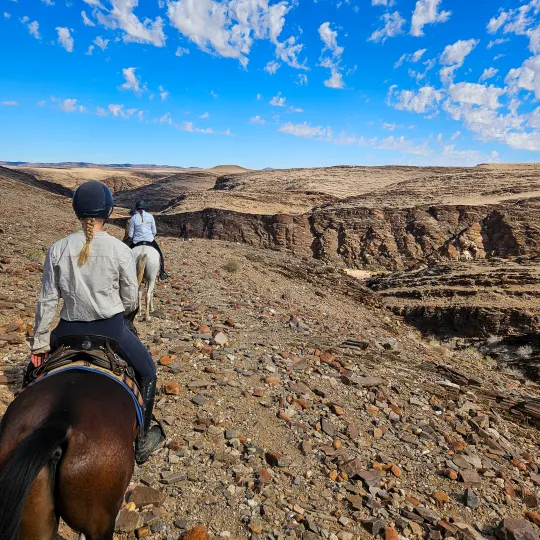 This is ultimate riding - you are going at pace, and the wild nature of the Namibian landscape calls for experience and confidence.