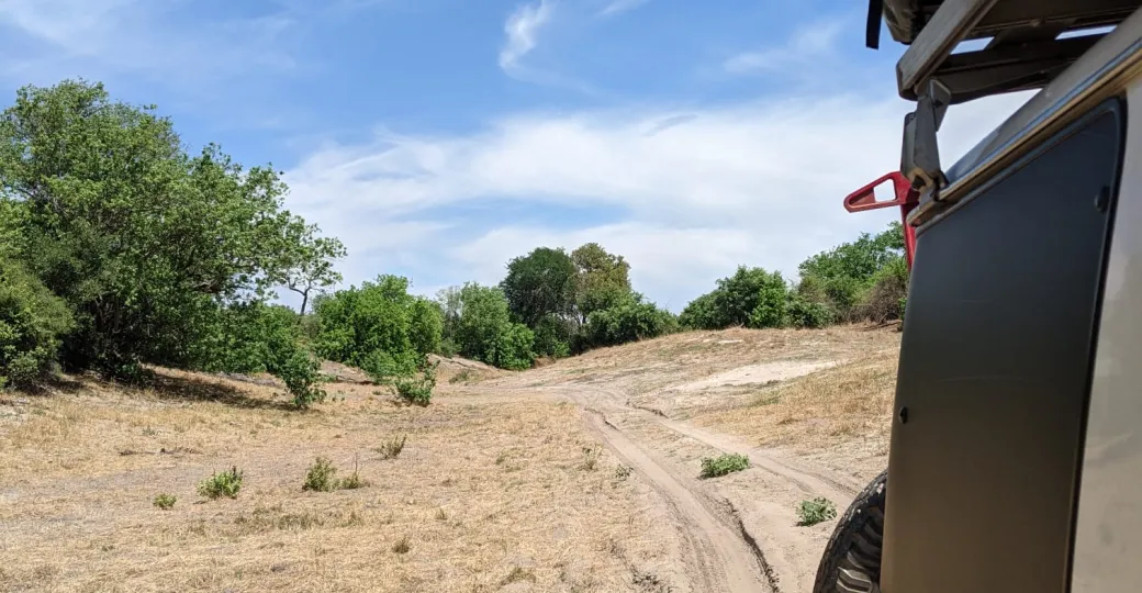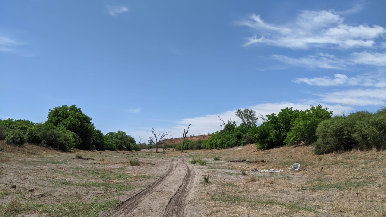 Driving down the dry Savute Channel in late 2021 - James Handley
