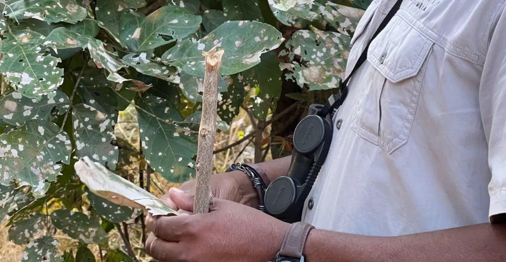 Another intriguing find during our walk was the Rain tree. Its oversized leaves initially struck me as a canvas marred by a parasite. However, the truth behind this odd appearance is a testament to nature's ingenious strategies for survival. The Rain tree maintains a symbiotic relationship with a fungus, which imparts a distasteful hue to the leaves of young trees. This transformation serves as a natural deterrent, discouraging elephants from ravaging the tree, a scenario that's all too common with Mopane trees. By the time the Rain tree matures, the fungus recedes, leaving observers marveling at its clever tactics for survival.