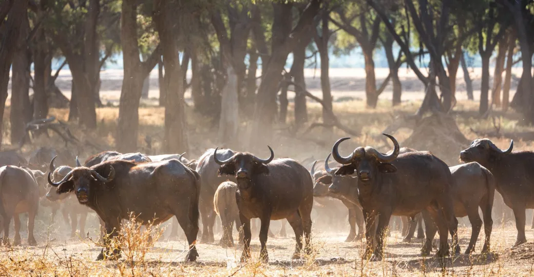 Butch lives and breathes Hwange, he has done for years, so he had an inkling the buffalo were headed for a waterhole not too far away. If we kept quiet, and a safe distance back, we might just creep up on them and get an up-close and personal view.