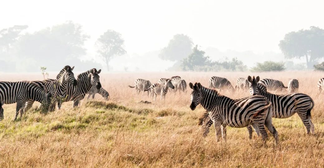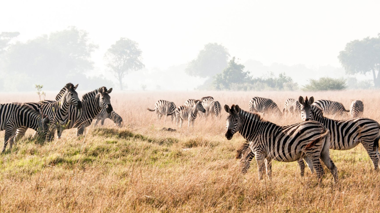 On this misty morning, in Botswana's Okavango Delta, we stopped to watch this dazzle of zebra, as they enjoyed some deliciously succulent grass.