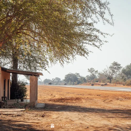 Moments after landing in the Lower Zambezi a herd of elephant cross the runway.