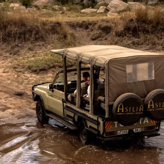 A 'closed vehicle' is a similar model of 4x4 but this time with a front and rear cab still intact. Passengers travel in the back, where there are large sliding windows and a roof hatch that pops up for unobstructed sightings. Closed vehicles are commonly found in East Africa, and are booked on a private basis for a land-based itinerary driving between national parks and different lodges, with the same guide throughout.
