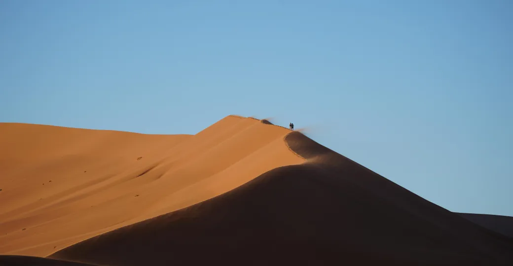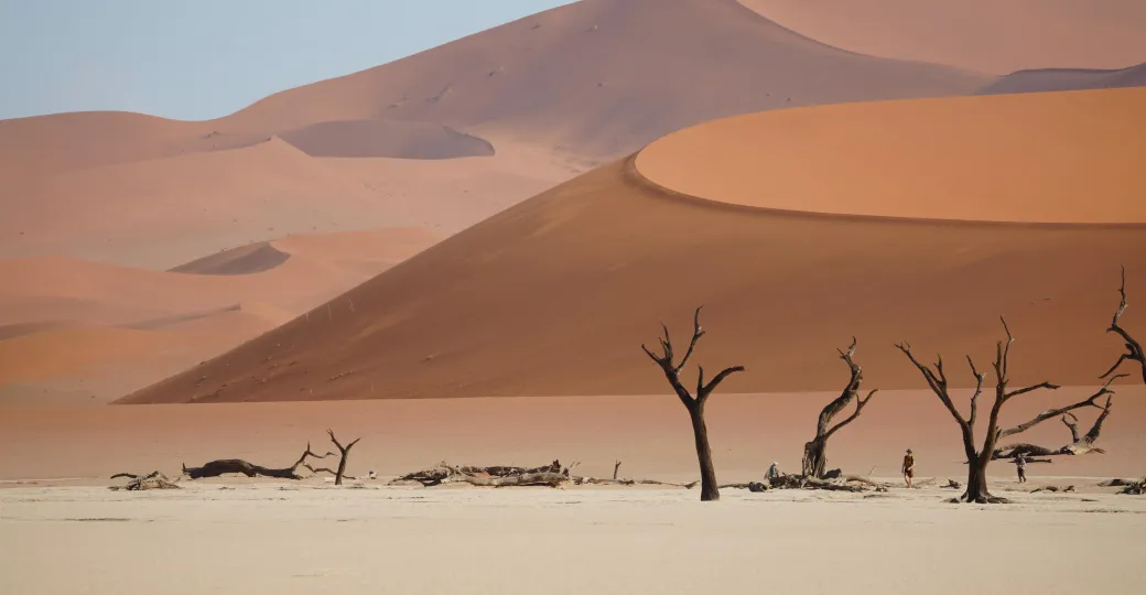 Deadvlei is essentially a natural phenomenon where a small, wooded area was cut off from the Tsauchab River by the formation of a sand dune in Sossusvlei. Due to its location and the ecosystem that surrounds it, there has been extremely little rain in this now cut-off, dried-up ‘pan’ for centuries, and the trees that once made up the wood have essentially fossilised, leaving a collection of what can only be described as 'tree skeletons'.