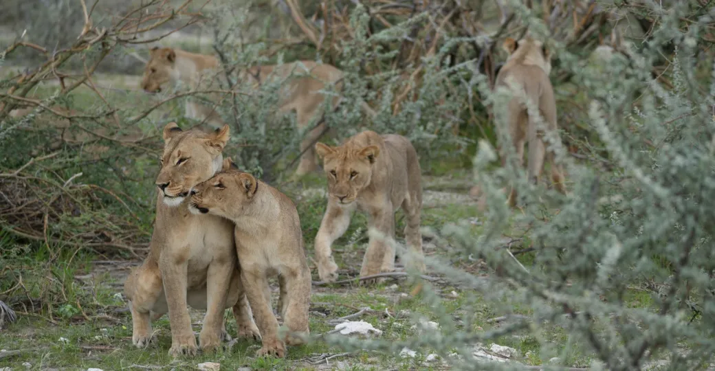 Stand-out experiences in Etosha included seeing a cheetah and cub moving through Onguma, a wonderful elephant sighting with three very relaxed males, and an incredible sighting of a pride of six lions moving through the bush (and some very bold jackals!).