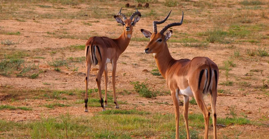 Our drive began as the bush was stirring back into life after another baking hot day under the African sun. We were barely out of camp when we came across a huge herd of around 200 impala at one end of the dirt airstrip. It was early February at the time so there were plenty of mothers with calves, and a handful of bachelors milling about.
