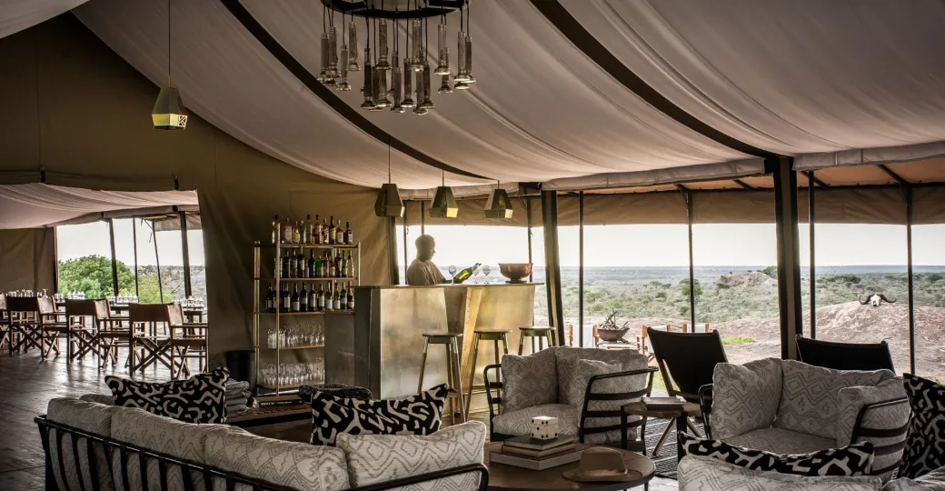 This intimate and elegantly furnished camp moves twice yearly to position itself for the migration. The tented main dining area is vast and commands panoramic views over the beautiful surroundings.