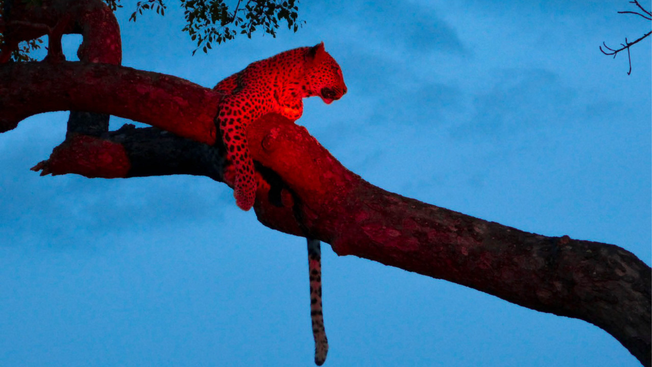 To overcome this issue whilst on a night drive, respectful lodges will use red light filters on their spotlights.
