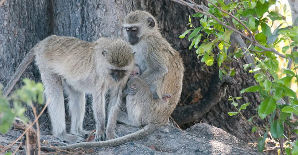 A family of vervet monkeys keeping a keen eye out for any threats