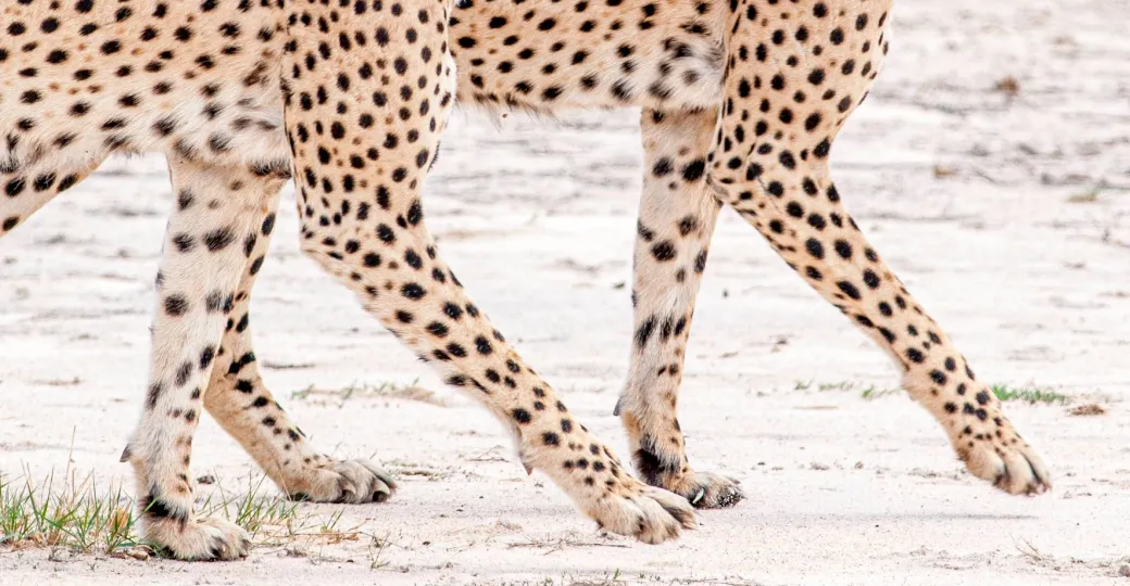 The claws of the cheetah do not fully retract. This means the claws are always visible in their tracks. Unlike lions and leopards, cheetah don’t have the upper body strength to haul down their prey. Instead, they rely on ‘tap-tackling’ at high speed to bring their prey to ground.