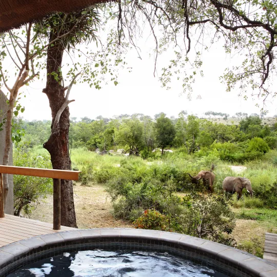Whether you’re soaking in a freestanding bath with a view of elephants crossing the river or relaxing in your private plunge pool, you’re immersed in an experience that brings the outside world in.