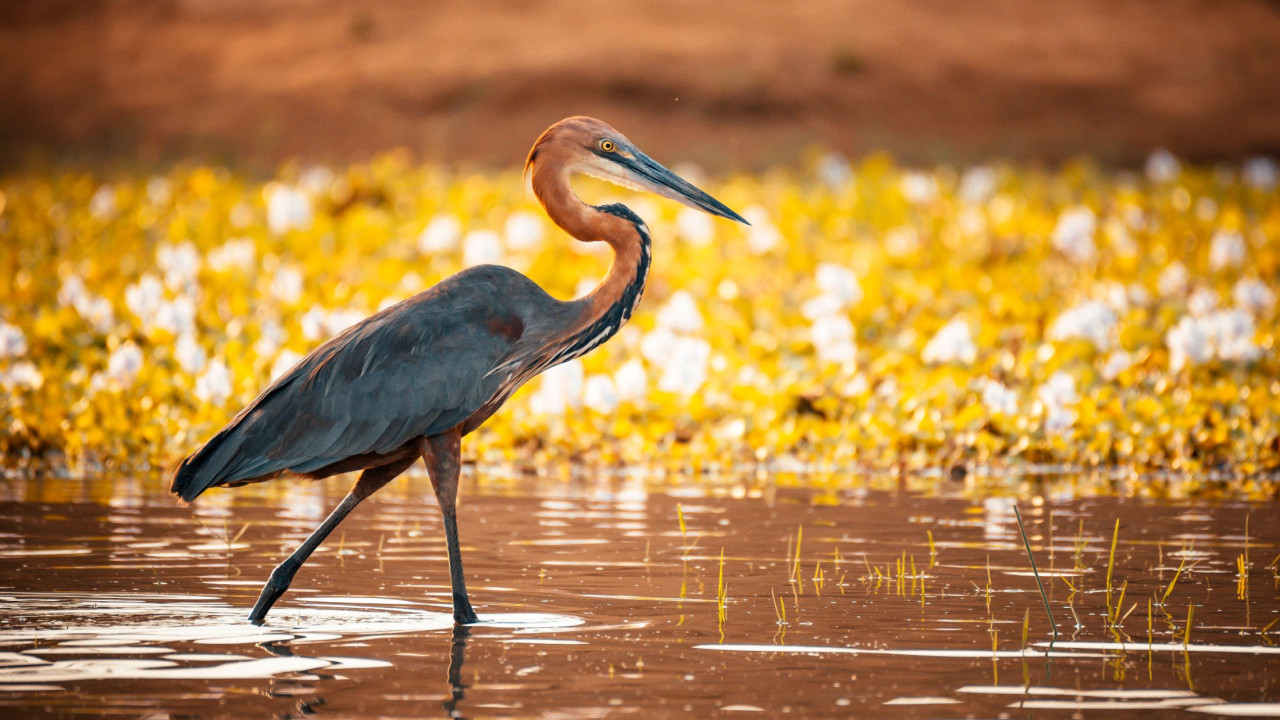 Goliath heron scans the water for a catch: