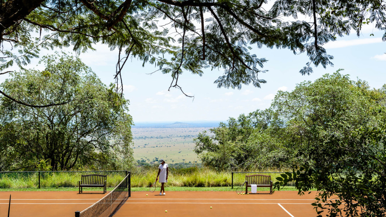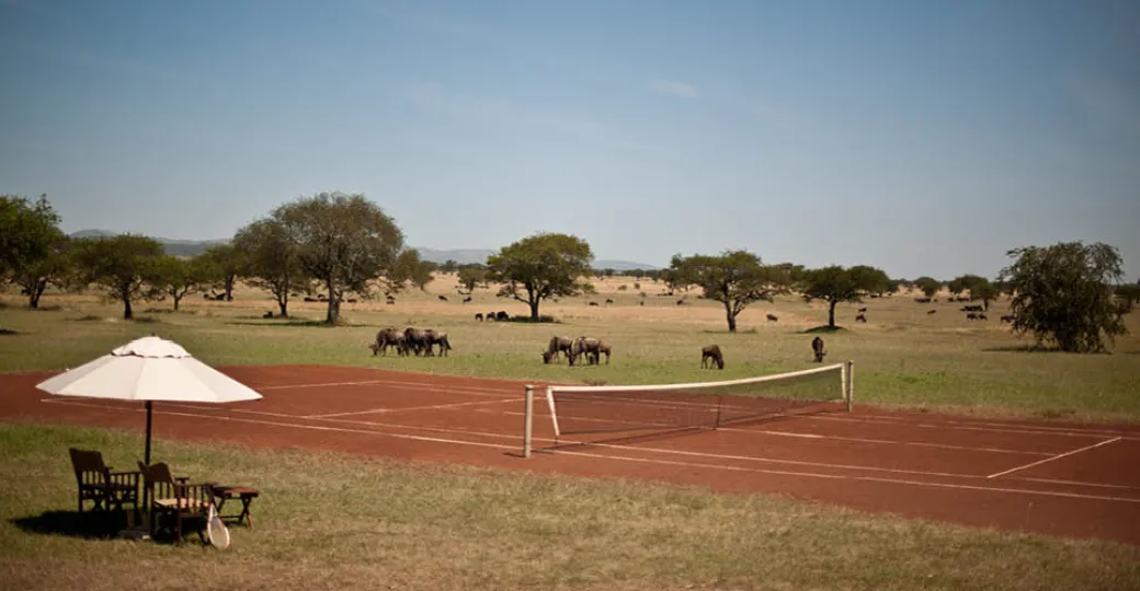 The first set of our dream match is played at this clay tennis court in Tanzania’s Grumeti Reserve (adjacent to the Serengeti National Park) where you can expect to have baboons for ball boys and zebras for line judges.