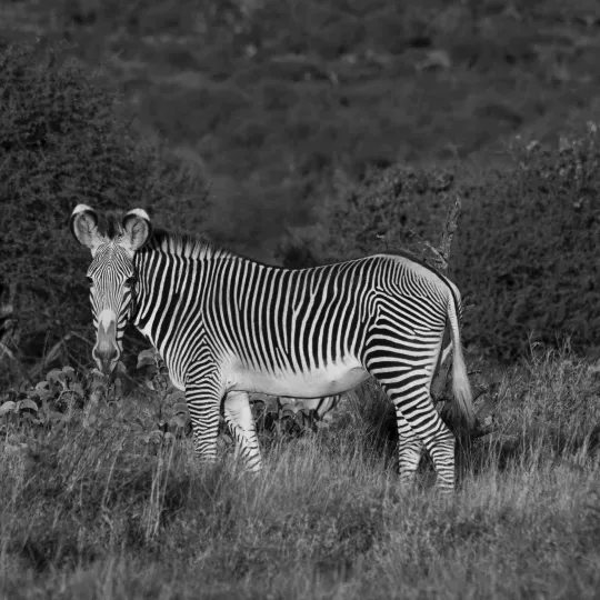 Grevy's zebra (on the left, image courtesy of Gio S Studio) has stripes far closer together than the Plains Zebra on the right (image courtesy of Toby Pheasant)